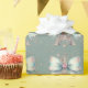 Gift-wrap with an artistic Eiffel Tower with bow and a pink hem in the centre..