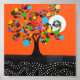 Colourful tree with love heart in trunk, with full moon and dotted art