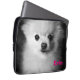 Adorable Pomeranian Puppy dog! Close up black and white photograph of a charming blonde Pomeranian dog face.
