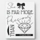 Elegant black and white line art design featuring a delicate jewel and ribbon illustration paired with the timeless Scripture, “She is far more precious than jewels” — Proverbs 31:10.