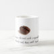 A mug that says, "A cup of coffee shared with a friend is happiness tasted and time well spent. ".