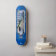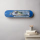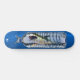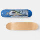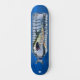 Dd brand skateboard, with graphic artwork of a great white shark trapped in a water bottle, against a blue background. Customise to add your own text.