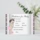 Predictions for baby baby shower cards and advice for the parents card with cute vintage princess baby girl wearing pink ruffle pants and bow on a pretty pink a grey lace background. These cute princess predictions for baby and advice cards can be customised for your event. Simply have your guests fill them out and the one closest with predictions wins a prize. Be sure to keep all the cards and save as baby's keepsake.