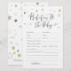 This baby shower card features a script modern font with stars background, perfect for a gender reveal shower party! For more funny and unique games and cards, please check the collection below.