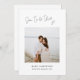 Stylish and minimalist pregnancy announcement card featuring script text at the top that says "soon to be three" with a heart. You can add a photo on the front and back.