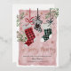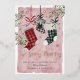 Announce the arrival of your new baby this Christmas season with our beautiful and festive Christmas pregnancy announcement holiday card. Our design features our hand-painted watercolor plaid pattern hanging Christmas stockings in red, green, and black. Each of the Christmas stockings is customised with the parent's name. The middle black plaid stocking is written with "Baby" to announce the arrival of your newest family member. "So Very Merry" is displayed in stylish white calligraphy. Customise with your baby's name and arrival date, along with the greeting and parent's name. The reverse side features our watercolor-painted festive wreath with the baby's stocking hanging in the middle and customised with the baby's monogram. This is a unique memorable holiday card to send to your family and friends to announce your baby's arrival this holiday season.