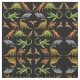 Original fine art design of many different kinds of Pre-Historic dinosaurs from tyrannosaurus rex and brachiosaurus to stegosaurus, and more against a dark background by designer Carolyn McFann of Two Purring Cats Studio printed on quality and customisable fabric of your choice.