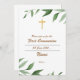 Cette carte d’invitation pour une première communion est un document qui annonce la cérémonie religieuse de la première communion d'un enfant. Elle est ornée de motifs religieux.