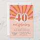 Add a trendy, retro-inspired vibe to your event with these 40th birthday party invitations. Simple design and easy to customise with all the party details. Peach, pink and red background swirl with the text: "40 and fabulous! Join the celebrations for (name's) birthday". Bright, bold and colourful! What could be more fabulous?