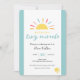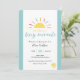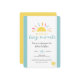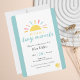 Bring a touch of sunshine to your baby shower invitations with this cute invitation! Text: "Waiting on a tiny miracle". Featuring a cartoon sun and stars and vibrant yellow and blue colour scheme with elegant script typography. This modern design is easy to customise with the party details.