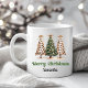 Celebrate the holidays with this stylish leopard christmas trees mug, designed in a unique watercolor and minimalist style. Featuring earthy tones with a green and gold color scheme, this artistic and slightly eccentric design stands out beautifully. The playful leopard pattern adds a trendy twist to classic Christmas trees, making it a perfect blend of festive and modern. Personalize it with a custom name to create a truly special gift. Ideal as a thoughtful gift idea for her, this designer mug brings warmth, charm, and personality to every coffee or tea moment during the holiday season and beyond.