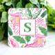 Preppy Alligator Wine Pink Green Monogram White Square Paper Coaster