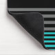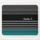 A preppy mens fashion mousepad with fresh teal and black stripes on the bottom and a trendy black and grey striped pattern on the rest of the pad. Personalise by adding your name to this modern contemporary style mat.
