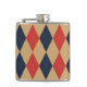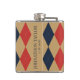 Preppy Argyle Khaki Navy Red Personalised Hip Flask