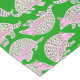 A green tablecloth with playful illustrations of pink and green preppy armadillos. The bright green fabric and the lively, preppy armadillos create a whimsical and fun atmosphere, perfect for a summer gathering!