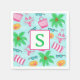 Personalise these preppy beach scene napkins with an initial and give them as a gift. This beach scene with a beach bags, bikinis, palm trees, sunglasses, beach bags and beach hats can be found on other products in my store, PageCreativeDesigns.