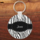 Preppy Black and White Tiger Stripes With Name Key Ring