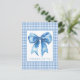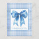 This cute postcard features a preppy blue bow on a background of blue and white gingham plaid. Personalize the front with your choice of name or special text.