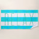 This trendy blue and white wide stripe beach towel is ready for summer. Relax! is written across the front and contrasting stripes are on the back. You can personalize the text to anything you choose. So fun with it’s grungy lettering!