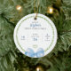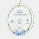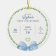 Commemorate your baby boy’s first holiday season with this preppy personalized Christmas ornament, featuring a refined birth stats layout and soft, watercolor design details. The front displays your child’s name, birth date, weight, and length in a sophisticated mix of fonts, paired with a green laurel wreath and delicate heart accent for a clean and timeless look. Finished with a blue watercolor bow at the bottom, this design blends classic holiday charm with a fresh, polished aesthetic that feels both traditional and modern. On the reverse, a baby photo is framed by the matching laurel motif and soft watercolor bows, making it a standout keepsake that’s both meaningful and beautifully styled. Perfect for families who love elegance, classic patterns, and elevated simplicity, this ornament captures the essence of a preppy holiday with sentimental detail. Whether gifted to new parents, grandparents or other family members, or hung on your own tree, it’s a charming way to celebrate a baby’s first Christmas in lasting style.