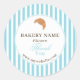 Preppy Blue Brown Stripes Bakery Logo Thank You Classic Round Sticker