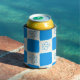 Preppy Blue Flower Chequered Pattern Can Cooler