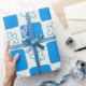 Preppy Blue Flower Chequered Pattern Wrapping Paper