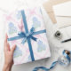 Preppy Blue Hydrangea with Pink Bow Trellis Wrapping Paper