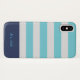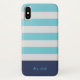 Preppy iPhone case with blue and white stripes, on the bottom a navy blue border as a monogram holder. Personalise with your very own monogram in elegant sans serif font and choose between two colours. This phone case can be paired with other accessories so check out our store for more items from our ''Nautical Stripes'' collection.