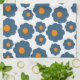 Preppy Blue Orange Hippie Flower Pattern Tea Towel