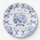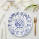 Preppy Blue Toile Hydrangea Bow with Name Paper Plate
