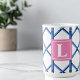 Preppy Blue Trellis Bamboo Pattern Monogram Coffee Mug