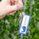 This cute keychain features a preppy whale in shades of blue. Personalise with your choice of name on the front and contact information on the back.
