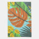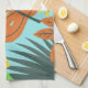Preppy botanical pattern blue orange pretty colours kitchen towel.