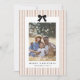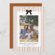 Festive Gingerbread Brown Stripe, Preppy Black Ribbon Bow Frame, flat 2 photo holiday card.
