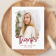 Trendy, modern graduation thank you postcard featuring the graduate's photo inside of a textured mask frame with "Thanks!" in a burgundy handwritten script. Personalize the front of the graduation thank you postcard by adding the graduate's name and graduation year. The postcard reverses to display your return address and custom message.