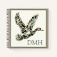 This hunting inspired monogrammed notebook features a classic flying mallard duck in camouflage print of dark green and brown on each side. Personalise the monogram on the front with your choice of .initials