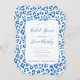 Leopard print with a modern preppy twist - in classic blue and white! Bridal Shower invitation design with the text on top of a curly bracket shape.