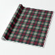 This design is a tartan or plaid pattern featuring a festive color palette, primarily consisting of cheery red, deep forest green and navy blue, overlaid with thin intersecting lines of white and gold. The overall effect is sophisticated and traditional, with the dark greens and reds making it highly suitable for use as Christmas wrapping paper, offering a classic and subtly festive aesthetic.