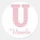 Preppy Classic Pink Chevon Letter U Monogram Round Sticker