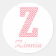 Preppy Classic Pink Chevon Letter Z Monogram Round Sticker