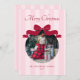 Send festive cheer with this modern holiday card, featuring cute pink stripes, a preppy red bow, and space for your favorite family photo. “Merry Christmas” shines in elegant script, while your family name and the year are displayed in sleek, contemporary typography—perfect for a stylish seasonal keepsake with a playful twist.