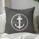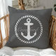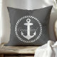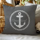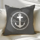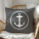 Preppy Dark Grey & White Nautical Anchor Monogram Cushion