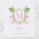 This Christmas wine label has a preppy design featuring a Christmas crest with palm trees and flamingos wearing Santa hats. The bottom has pink text that says "Merry Christmas." You can personalise with a name, year and your initial.