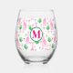 Preppy Giraffes Cosmopolitans Monogram Stemless Wine Glass