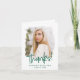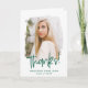 Trendy, modern graduation thank you card featuring the graduate's photo inside of a textured mask frame with "Thanks!" in a green handwritten script. Personalise the front of the graduation thank you card by adding the graduate's name and graduation year. The inside of the card features space for your typed or handwritten thank you message.