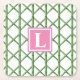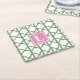 Preppy Green Trellis Bamboo Pattern Monogram Square Paper Coaster