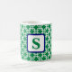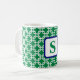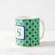Preppy Green White Link Pattern Navy Monogram Coffee Mug