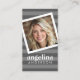 Preppy Grey Striped Pattern Custom Name and Photo Business Card