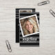 Preppy Grey Striped Pattern Custom Name and Photo Business Card